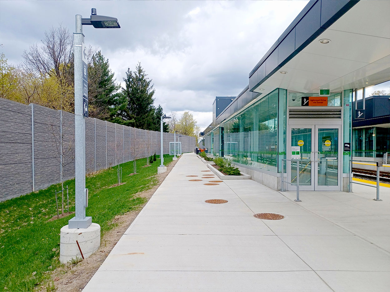 The completed Agincourt GO Station project delivers major upgrades to improve accessibility, comfort, and future service capacity. Enhancements include a new LEED Gold–certified station building, a second platform and track, upgraded platforms with snow-melting systems, new pedestrian tunnels and elevators, improved lighting and signage, expanded bicycle storage, and new canopies and shelters. These improvements support future two-way, all-day GO service while providing a better overall customer experience.