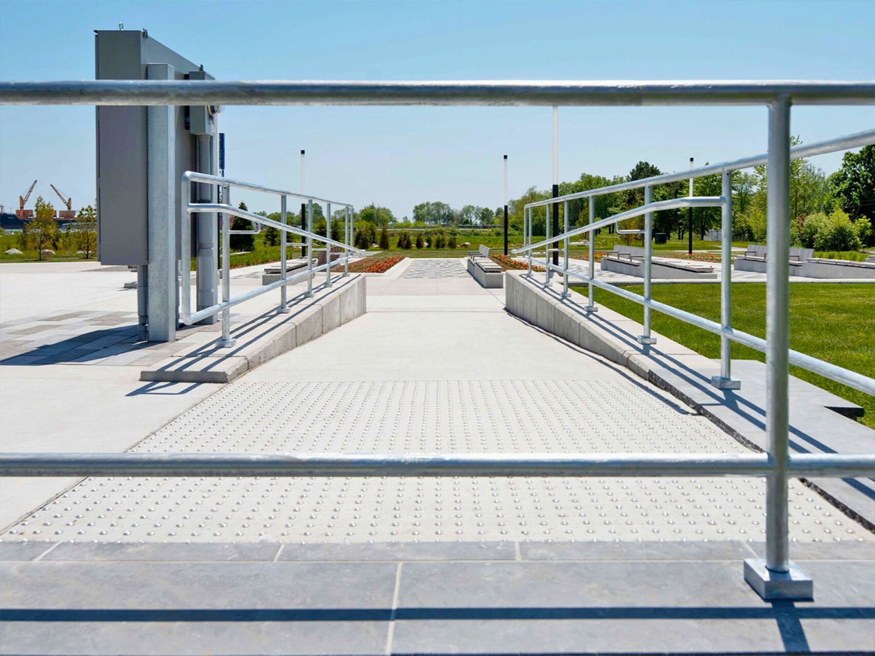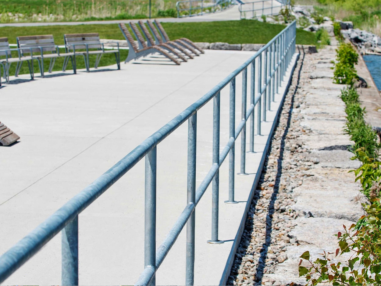 Located on former marina lands, Ed Broadbent Waterfront Park is the City of Oshawa’s newest waterfront destination. The park is seamlessly connected to the Joseph Kolodzie Oshawa Creek Bike Path, the Waterfront Trail, and Lakeview Park, offering visitors scenic views of the active Port of Oshawa. Key features include the expansive Garden of Human Rights, a network of concrete and asphalt pathways, and a performance stage with amphitheatre-style seating, creating a welcoming and accessible space for both recreation and community gatherings.