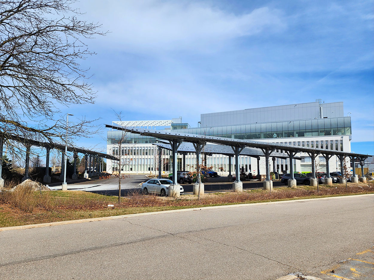 The National Research Council of Canada’s advanced materials research facility in Mississauga represents the NRC’s first physical research presence in the Greater Toronto Area. Developed as part of the Clean Energy Innovation Research Centre, the facility is designed to support research and commercialization of advanced materials technologies, with dedicated infrastructure to support clean energy initiatives, including structural steel solar panel systems.
